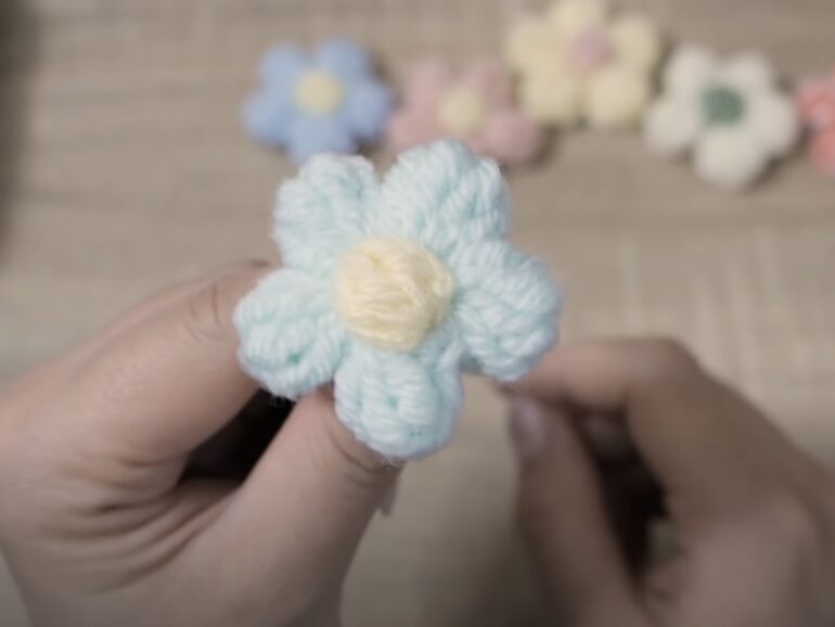 花の編み方 Crochet Flower: 簡単な小花№3 かぎ針編み無料編み図と動画。