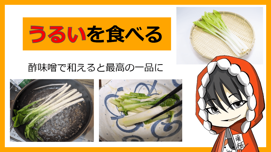 うるいを食べる酢味噌で和えると最高の一品にたかぴょんの『だがしかしたかし』。