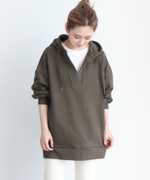 パーカー スキッパーフード付き裏毛プルオーバー〇*。
