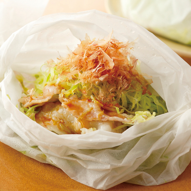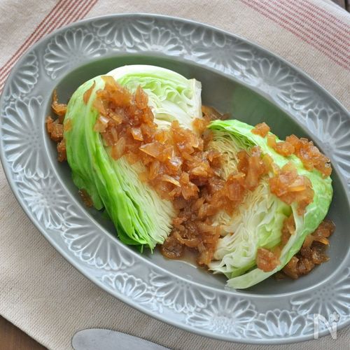 レンチン一発で楽々! お好み焼き風キャベツ蒸しアットレシピ @recipe。
