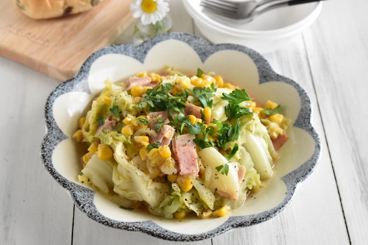 とろ~り甘くて絶品!「春キャベツとコーンの簡単レンジ蒸し」レシピ-四万十みやちゃん連載フーディストノート。