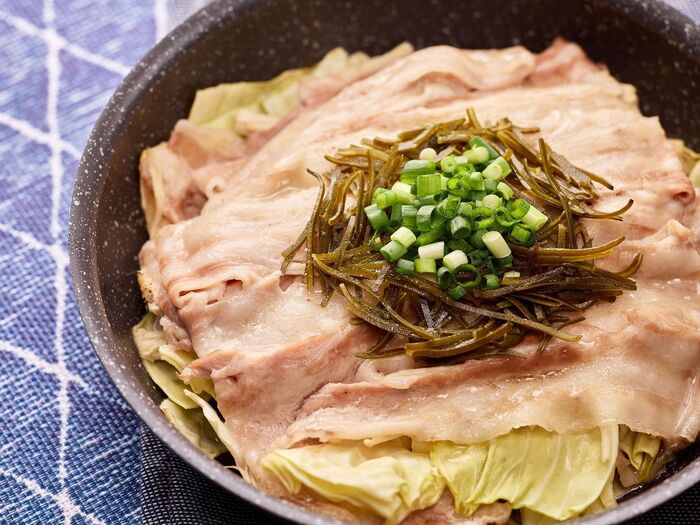 『豚キャベツのレンジ蒸し〜コクうま♡ネギだく中華だれ〜』。