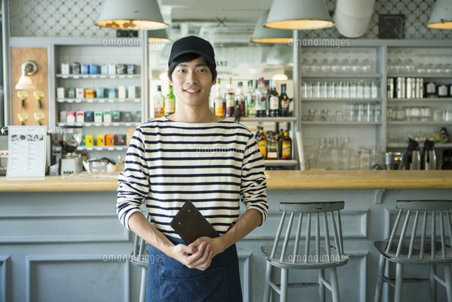 20代男性カフェ店員 10161017840 の写真・イラスト素材アマナイメージズ。
