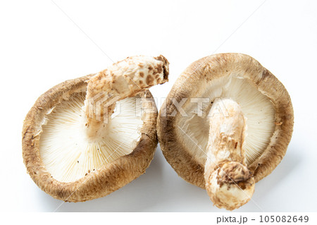 しいたけ 生椎茸 。傘の裏側 ヒダがある 方向から見たもの。 白バック の写真素材105082649- PIXTA。