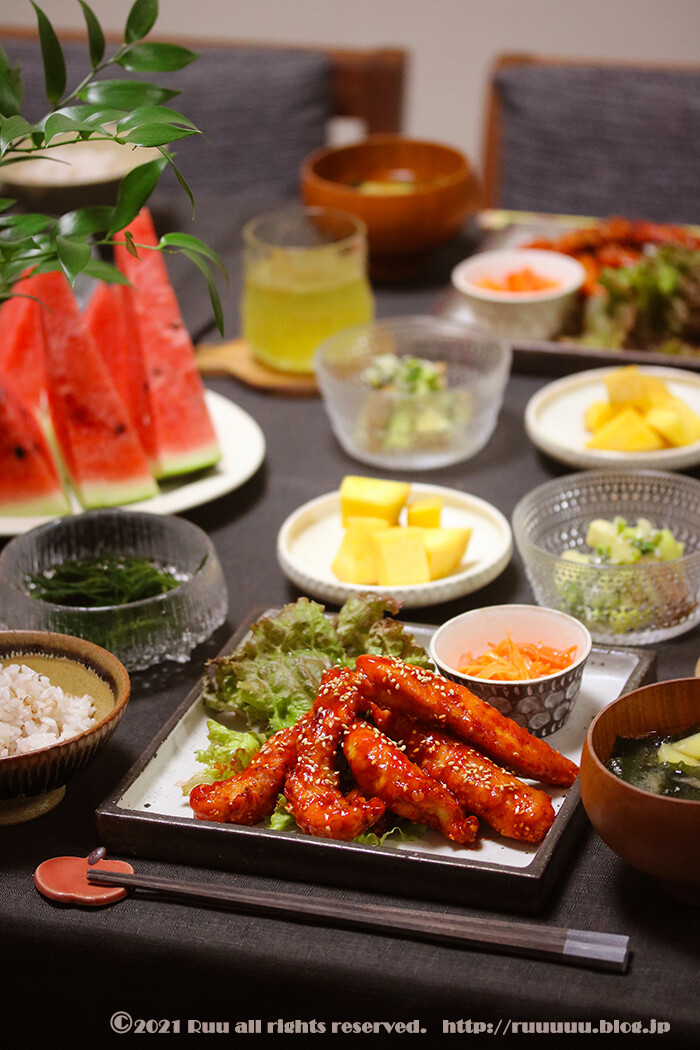 献立 スティックヤンニョムチキン。~今日の暑さはやべえ~ : るぅのおいしいうちごはん Powered by ライブドアブログ。