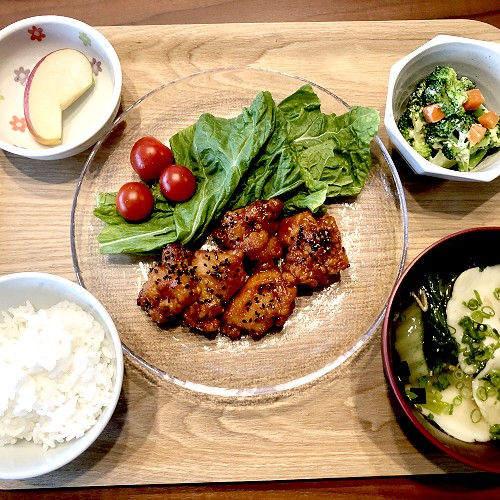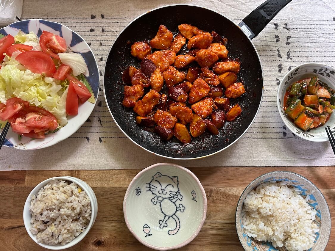 お昼ごはんタレで簡単ヤンニョムチキンのお献立毎日おいしい! 夫婦ふたり暮らしのシニアごはん レシピ。