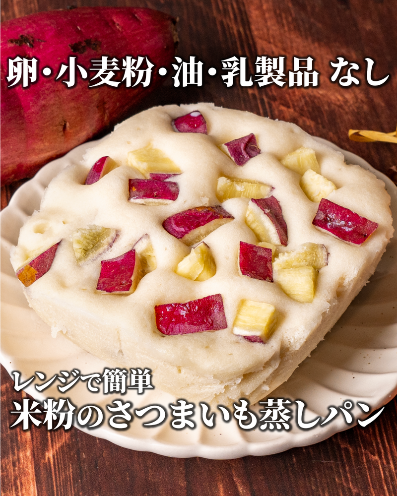 ふわモチさつまいも蒸しパン│卵なし&米粉入り!蒸し器不要。