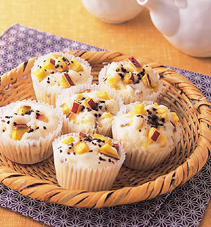 特定原材料8品目不使用おやつ!ふわモチ♪米粉のさつまいも蒸しパン金芽米の米粉パンケーキミックスレシピ- 人も自然もすこやかに『東洋ライス株式会社』。