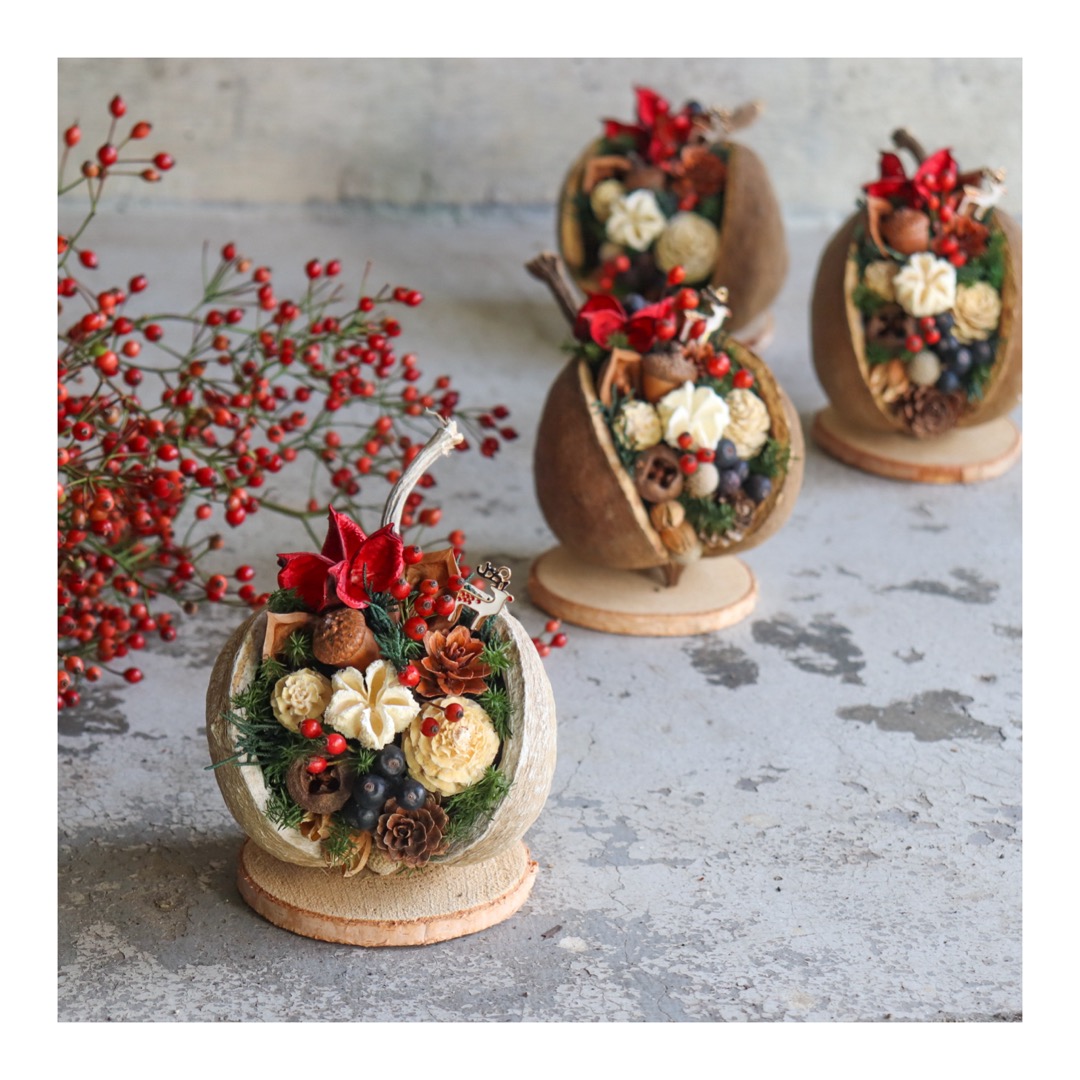 クリスマス ブッダナッツアレンジメントクリスマス ブッタナッツ 実 花 お花 フラワー アレンジメント ドライフラワー プリザーブドフラワー幸運 縁起 デザイン ギフト プレゼント インテリア 雑貨 植物 自宅用 お祝い 贈り物 プレゼント下関 山口 💐 - 山口県下関。