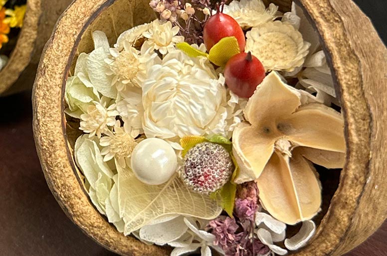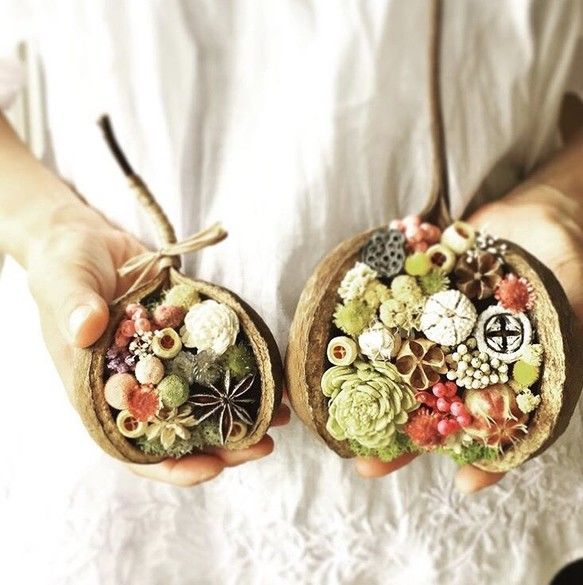 幸せを呼び込む幸運の木の実と呼ばれるブッダナッツ使います♡ブッダナッツを使ったアレンジメントの作り方不器用さんのハンドメイド。