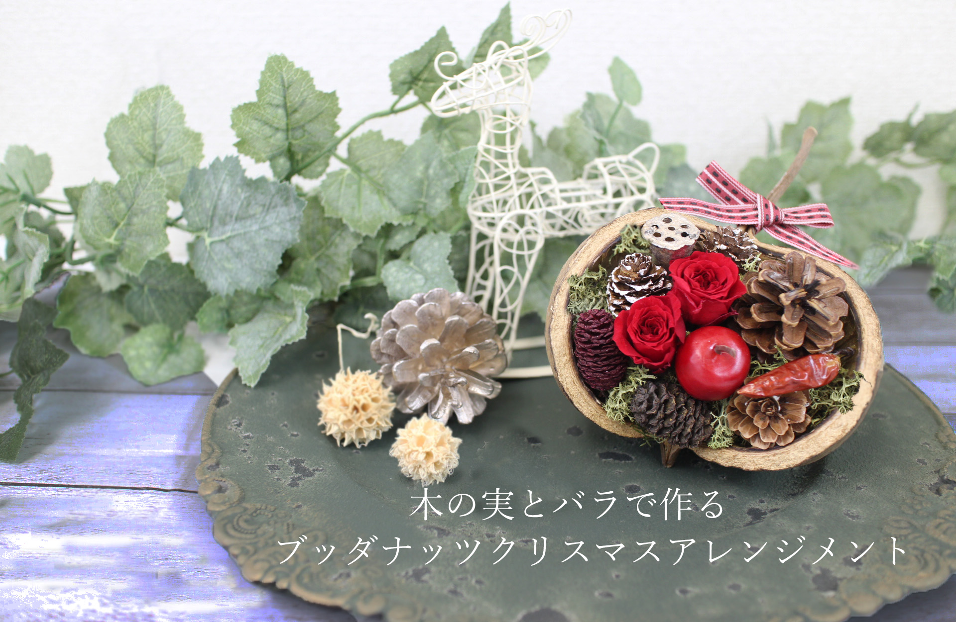 手作りキットができました~ブッダナッツアレンジ吹田・豊中 小さなアレンジメントをちょこっと楽しむお花の教室CafeRose カフェローズ。
