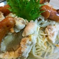 焼きそば~だい”! キャベツともやしがあるから〜と思ってたら先に言われた。 ちょっと蒸し鶏とわかめの酢味噌も、🍄いっぱいお吸い物もいいね。 かおり飯。