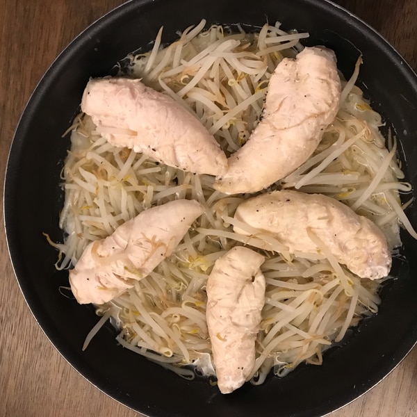 フライパンで5分♪『鶏むね肉ともやしの重ね蒸し』レシピサイトNadia。