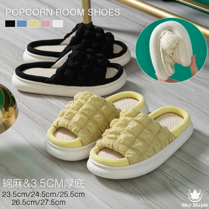 楽天市場 ポップコーン 生地 布 ポップコーン生地 ポコポコ ワッフル スリッパ 室内 綿麻スリッパ ルームシューズ レディース 3.5cm 厚底静音 滑りにくい ルームスリッパ 秋用 夏用 来客用 オールシーズン 綿麻 快適 蒸れにくい 通気性よい 軽量 母の日 プレゼント。