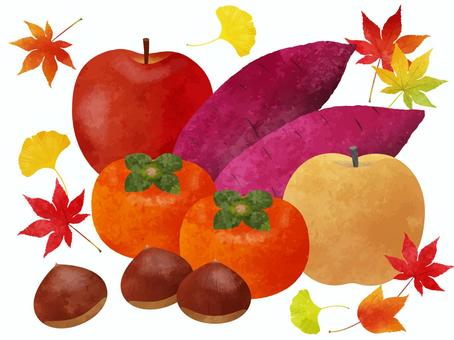 日本の秋の野菜・果物のセットイラスト - No: 1584605無料イラスト・フリー素材なら「イラストAC」。