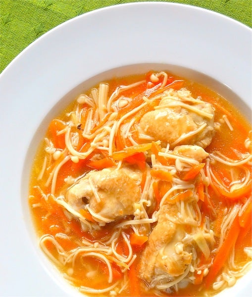 美肌レシピ めんつゆとカンタン酢で味付け☆手羽元と伊予柑のさっぱり煮。