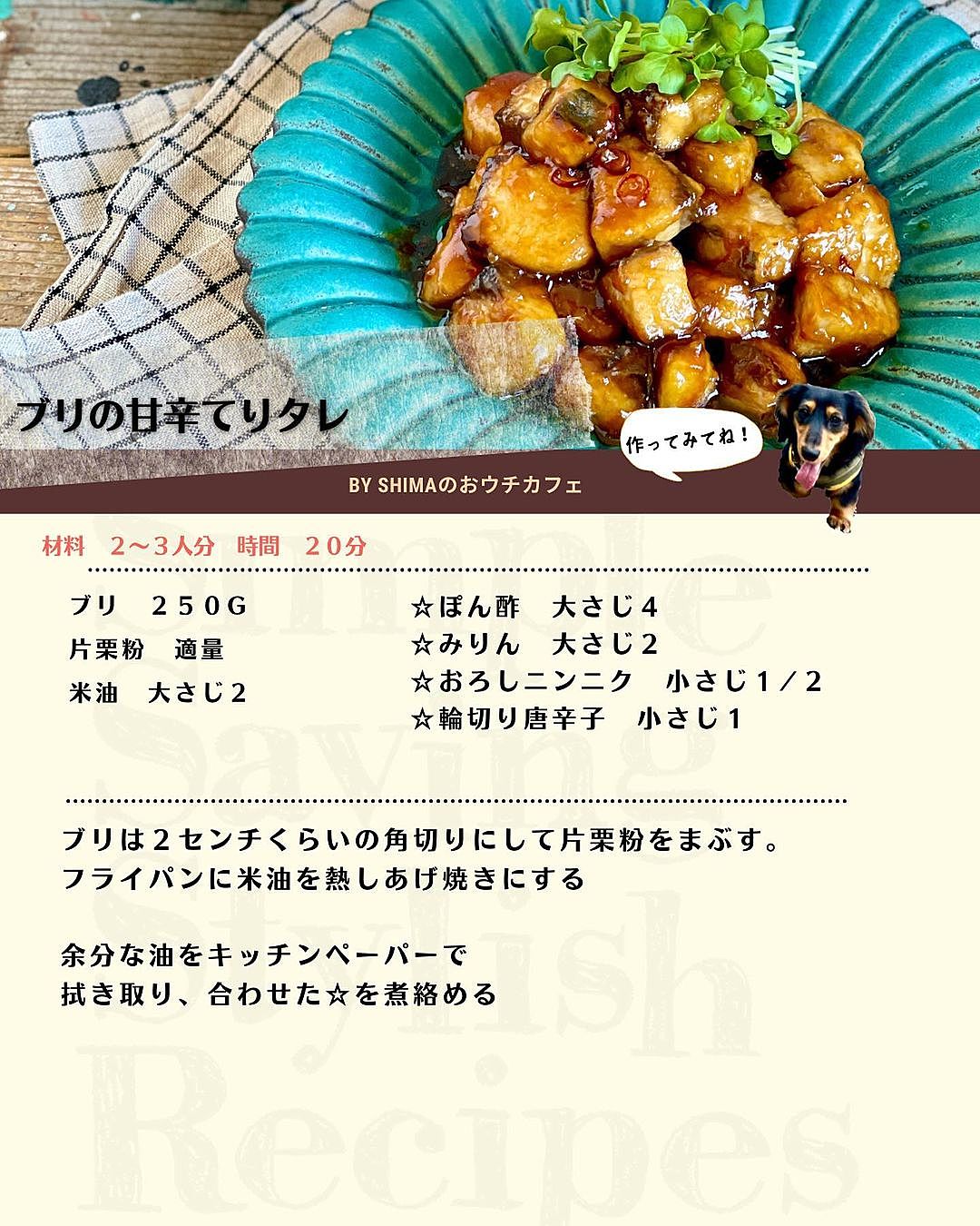 照りうま♡ぶりの照り焼き とろ〜り甘辛だれがご飯に合う。