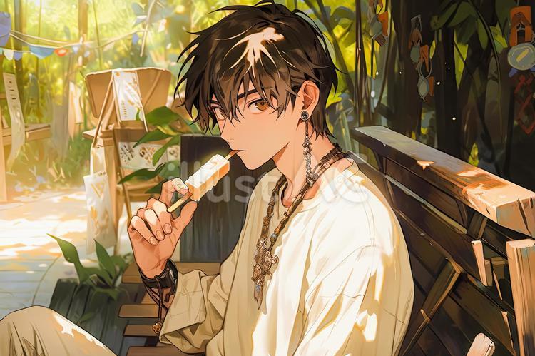夏の暑い日にアイスを食べる若い男のイラスト素材104267302- PIXTA。