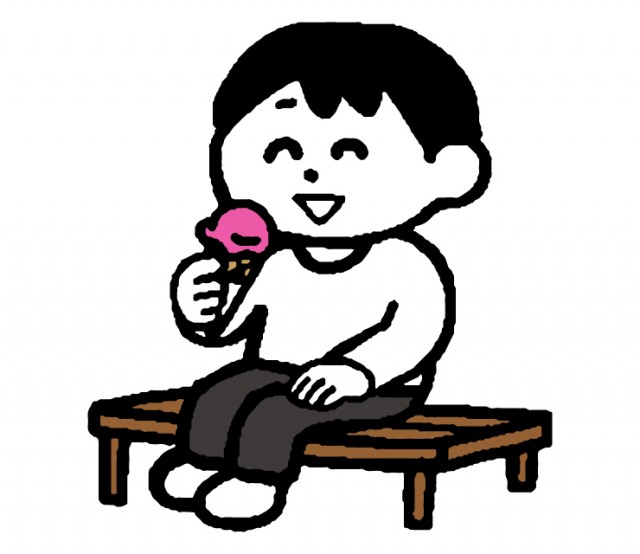 ベンチでアイスを食べる男性のイラスト無料イラスト素材素材ラボ。