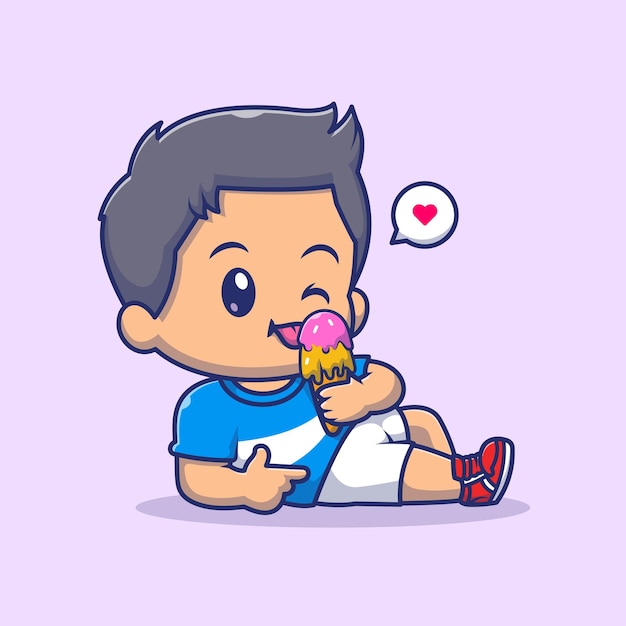 アイスクリームを食べるかわいい男の子 漫画のベクトル アイコン イラスト 人々 食品アイコン コンセプト フラットに分離Premiumベクトル素材。