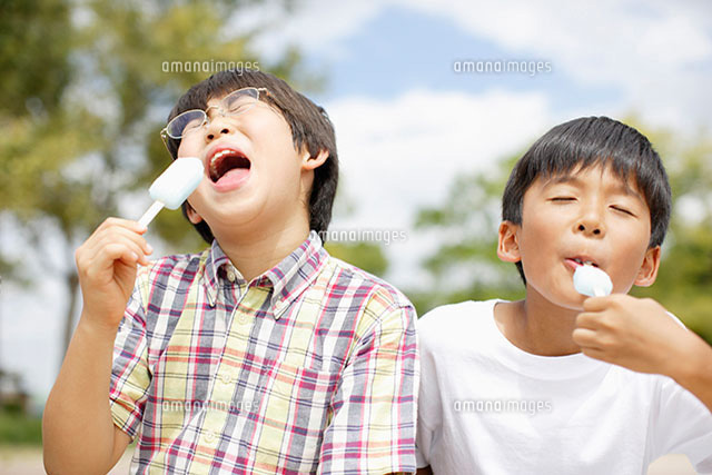 アイスを食べている二人の男の子 11004036397 の写真・イラスト素材アマナイメージズ。
