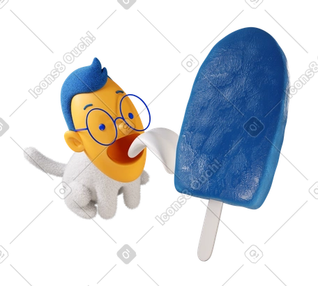 3D 大きなアイスクリームを食べる男 PNG、SVG。