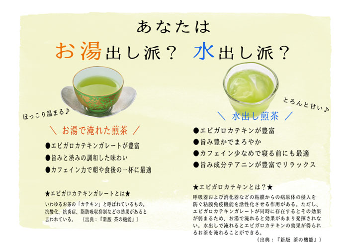 冷茶の特長、冷たい緑茶の作り方。水出しと急冷の違いと保存期間。
