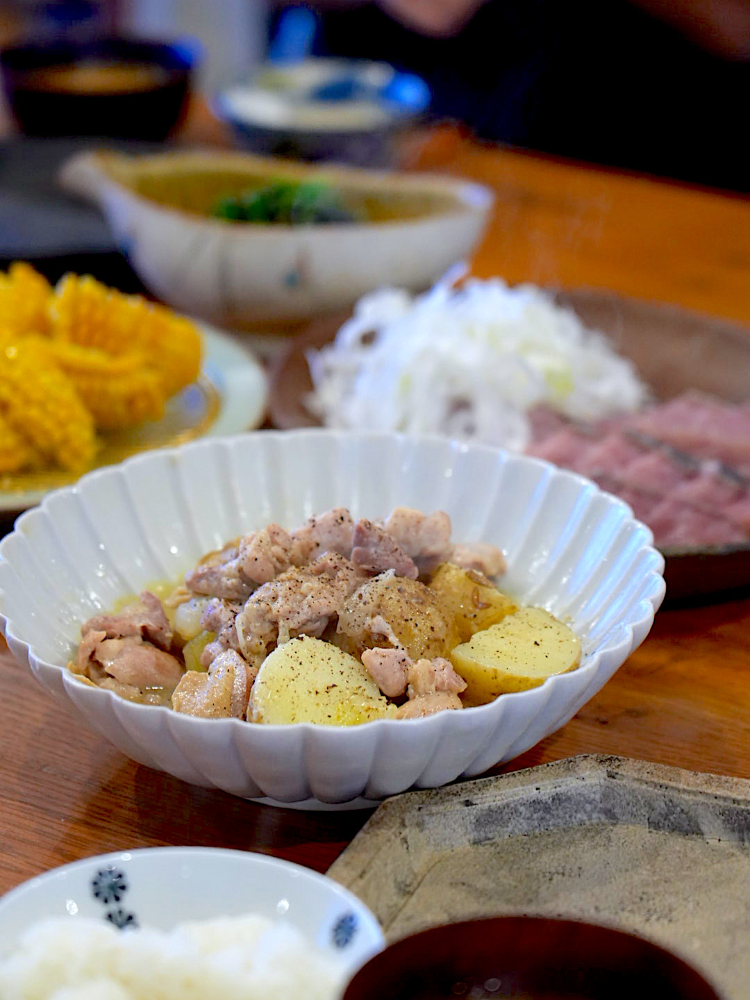 きのうの献立:塩味肉じゃが「にんにくじゃが」あさこ食堂。