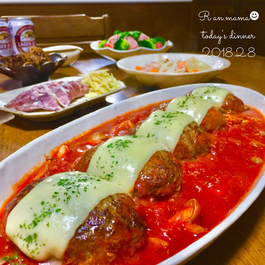 とろとろチーズでおいしさ倍増! トマト 煮込み チーズ ハンバーグ のレシピ 作り方。