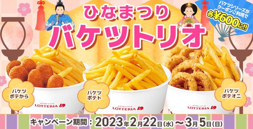 ロッテリア“ひなまつりバケツポテト”キャンペーン2023、バケツポテから・バケツポテオニ・バケツポテトを各600円で2023年2月22日-エキサイトニュース。