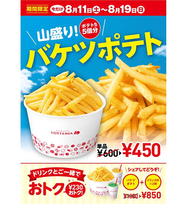 ロッテリア、ポテト全品半額キャンペーンを開催。バケツポテトと「ふるポテ」も半額に。