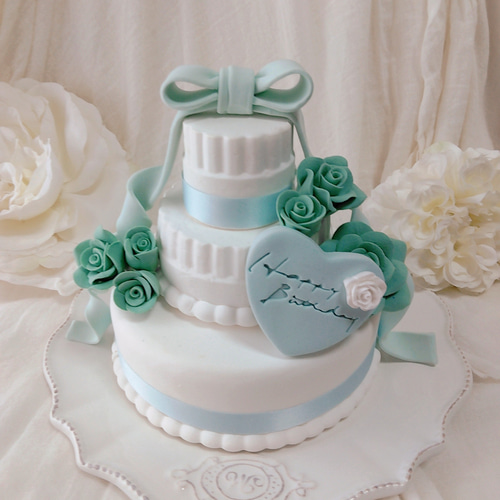 1727 青薔薇3段 クレイケーキ ハーフバースデー 生誕祭 センイルケーキ。