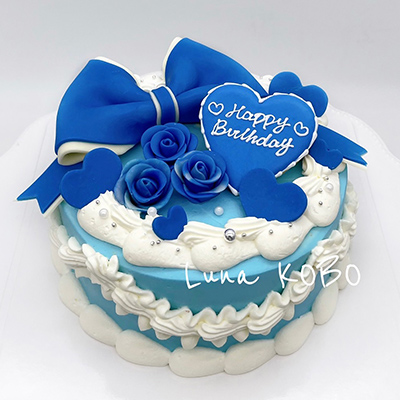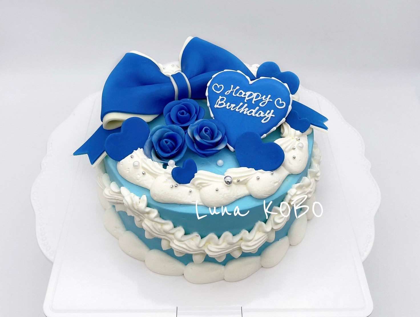 2重リボンケーキ 青–オーダーケーキの通販・専⾨店 ⼤阪堀江のルナコーボーLunaKOBO。