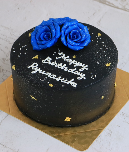 個性あふれるダークブルーのセンイルケーキ鹿児島お菓子厨房 addPatisserie。
