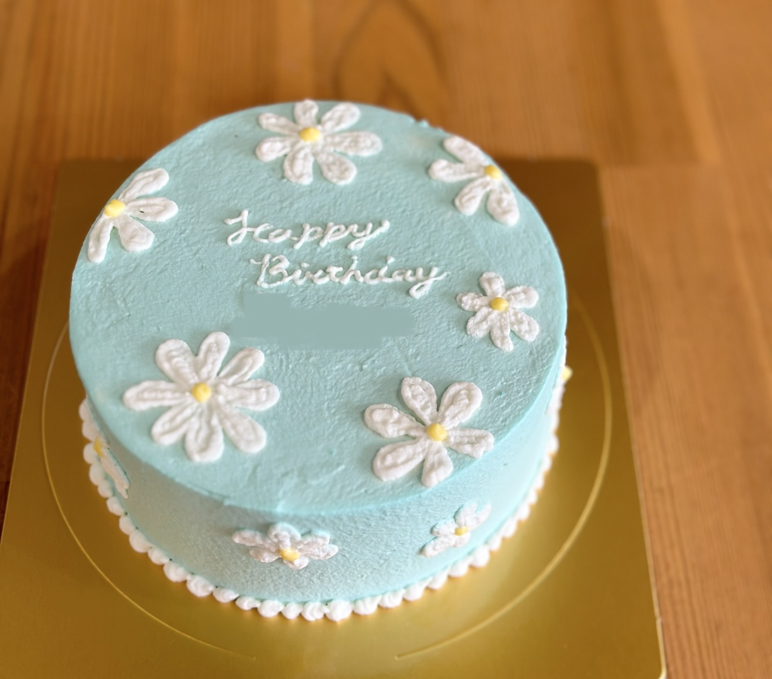 水色のお花いっぱいのバースデーケーキhandmade cafe*。