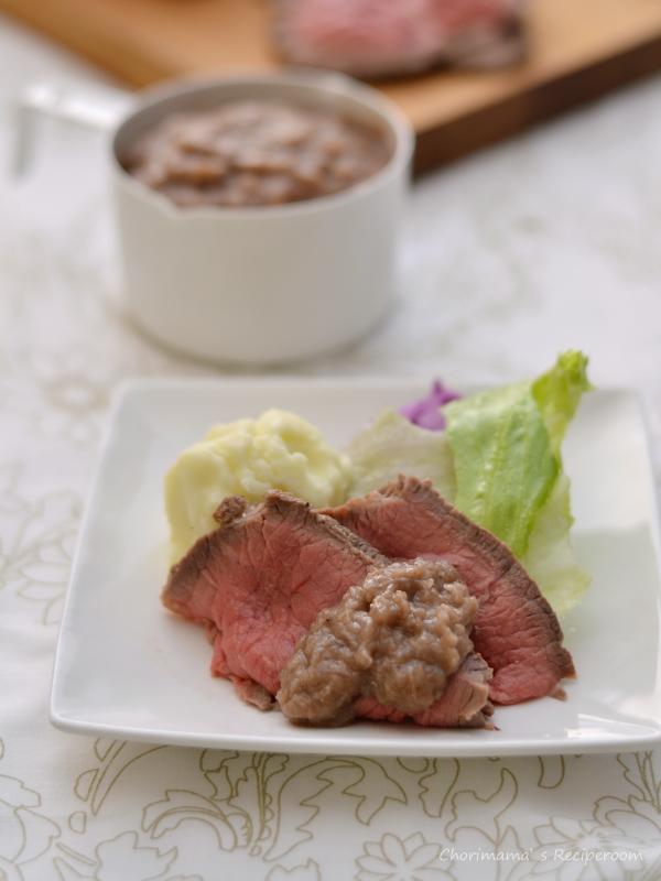 オニオングレービーソース。 簡単ローストビーフの煮汁活用 の晩ご飯。 : ちょりまめ日和ちょりママ 西山京子 オフィシャル料理ブログPowered by ライブドアブログ。