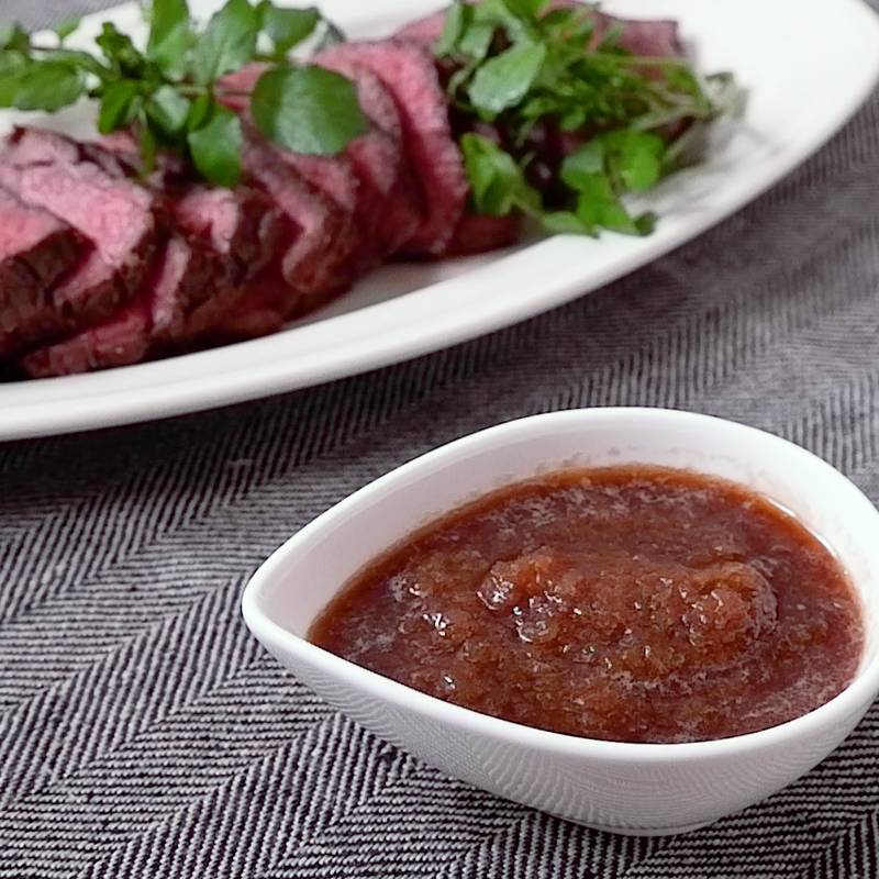 ローストビーフの玉ねぎ赤ワインソースBONIQ ボニーク 公式低温調理レシピサイト。