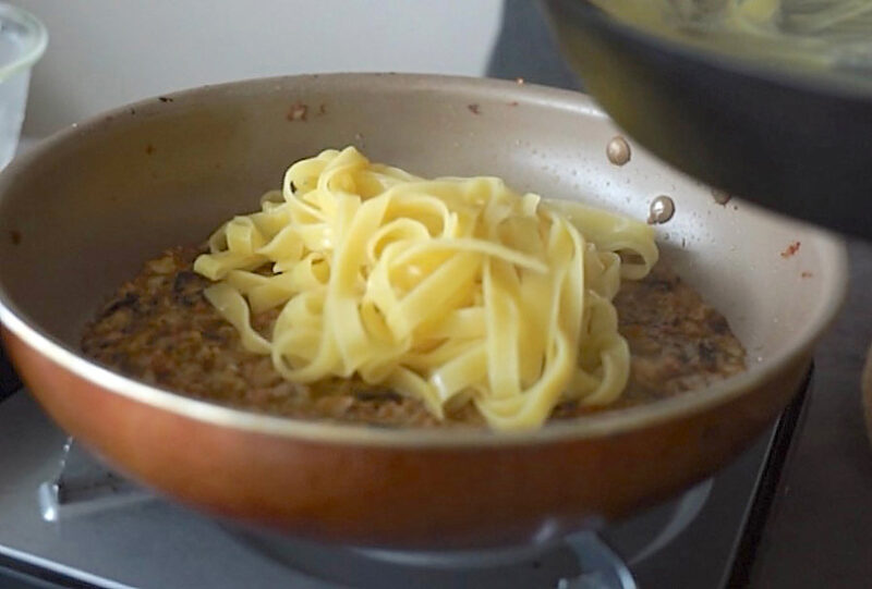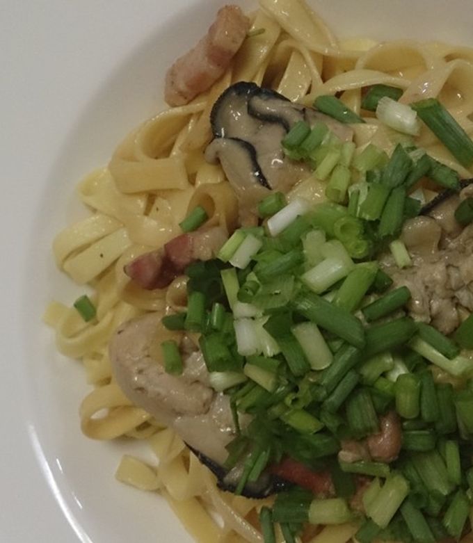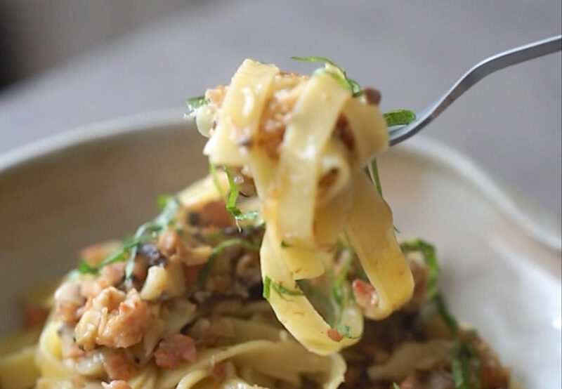 ベーコンとキノコのフェットチーネ:生パスタの新しい魅力。