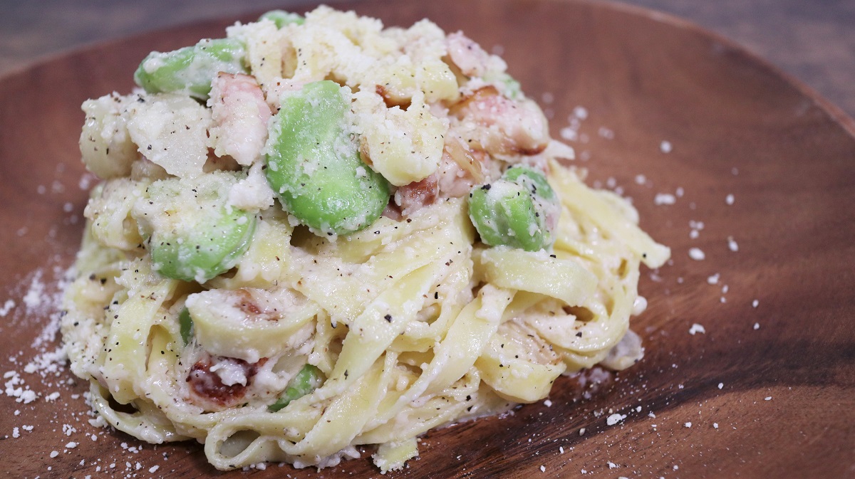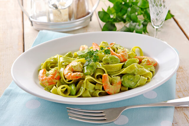 そら豆とえびの抹茶クリームフェットチーネレシピ集伊藤園 商品情報サイト。