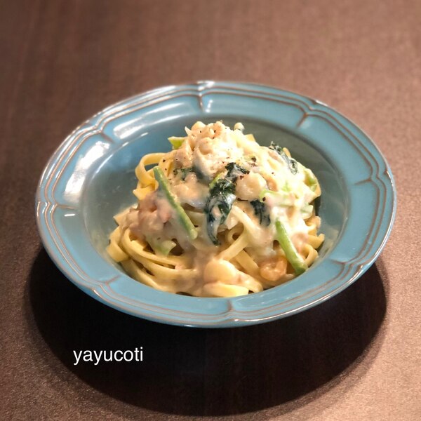 海老の和風クリームソース スピナッチフィットチーネ : Rika@_flute Cooking♪。