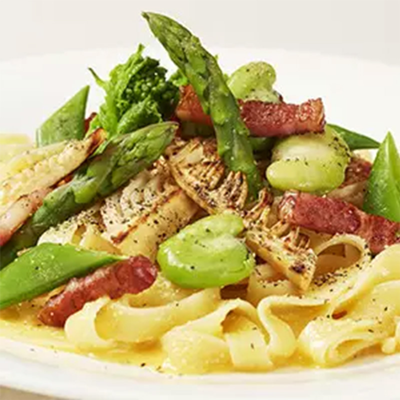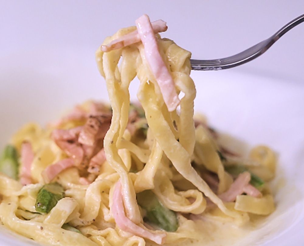 アスパラガス入りフェットチーネ~カルボナーラ風~。