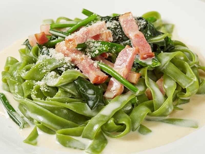 ベーコンとほうれん草のフェットチーネクリームニューオークボ。