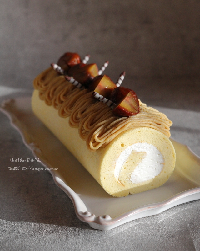 茹で栗で作る♪モンブランロールケーキ❁覚書きレシピあり小麦粉だいすき。