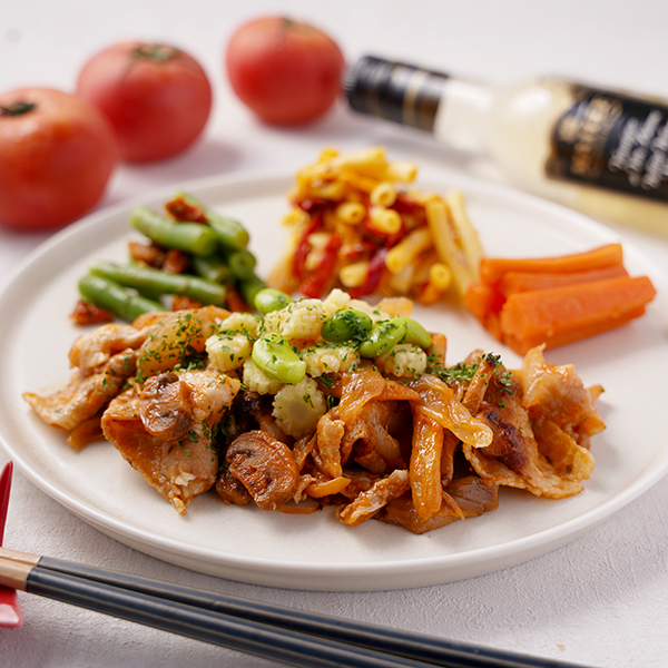 きのこたっぷり!白ワインビネガー香るポークチャップフレンチシェフの冷凍宅配弁当。