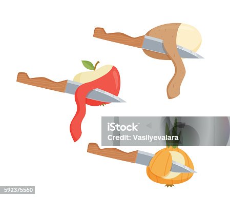 ピーラーで皮を剥かれる野菜や果物のイラスト素材86949778- PIXTA。