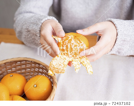 果物の分厚い皮を剥く手の写真・画像素材-Snapmart スナップマート。