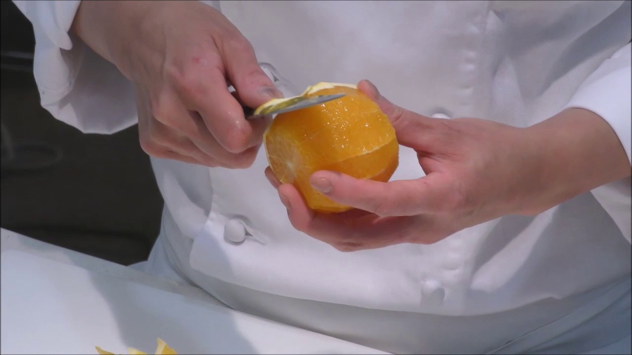 オレンジの皮むき プロ パティシエの技国際調理製菓専門学校。