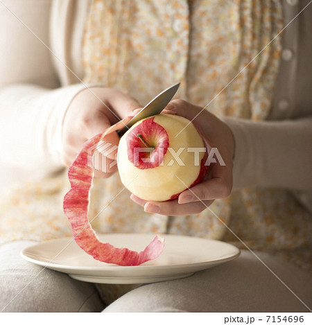 リンゴの皮を剥く手元の写真素材7154696- PIXTA。