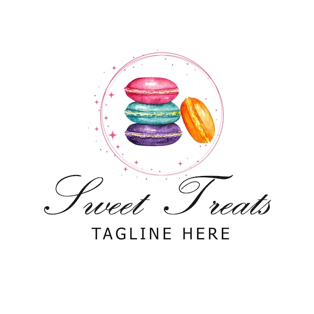 マカロンロゴ、カスタムロゴデザイン、ベーカリーロゴデザイン、スイーツロゴ、マカロンロゴ、ベーカリースイーツPremiumベクトル素材。