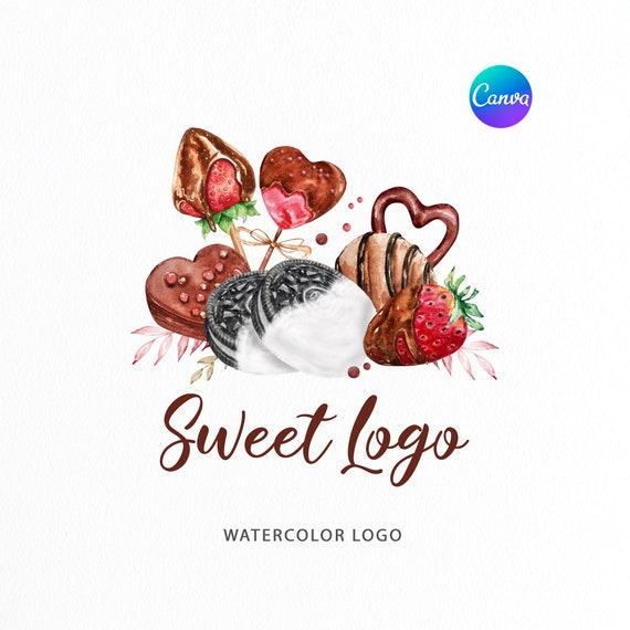 ベーカリーロゴ ストロベリーチョコレート水彩画風スイーツロゴデザインスイートハートロゴカスタムロゴベーキング既製ロゴパティシエ - Etsy 日本。
